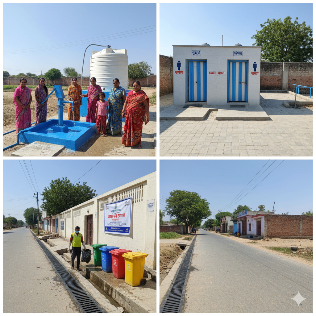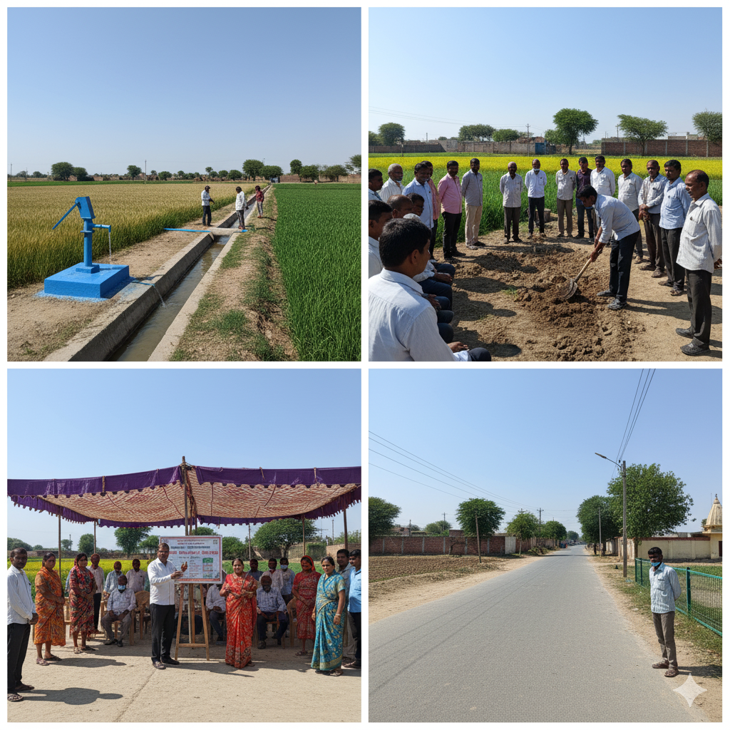 • Water Supply: Ensures safe drinking water is available to all villagers through the construction and maintenance of wells, handpumps, water tanks, and pipelines.